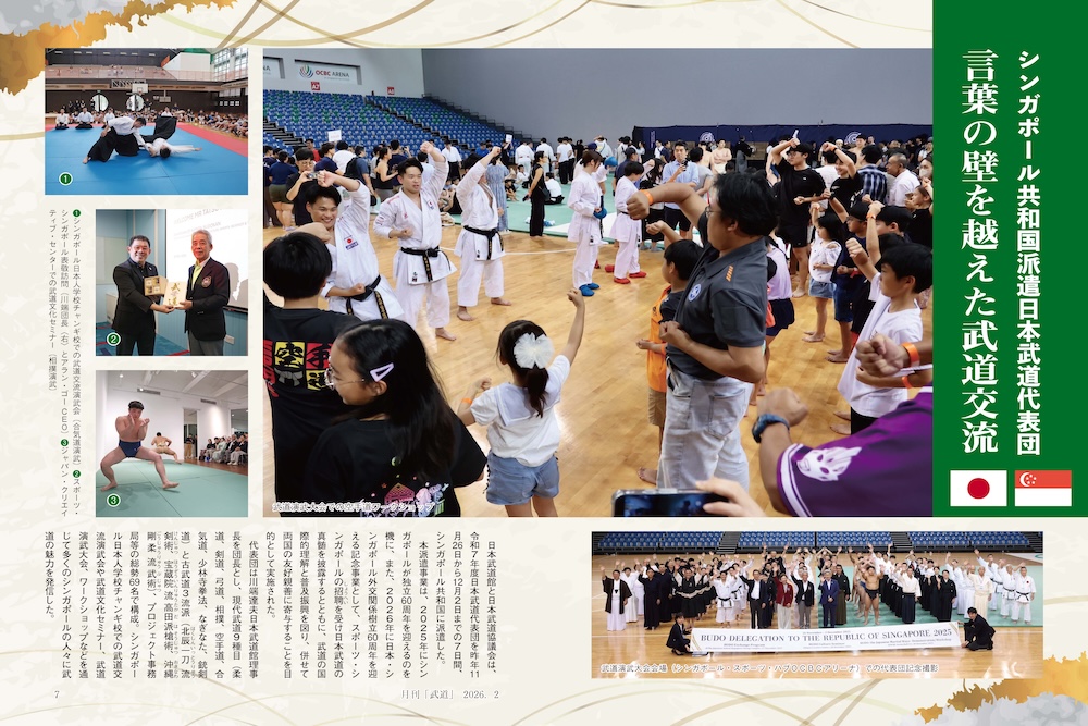 昨年11月26日〜12月2日、シンガポール共和国に派遣されたシンガポール共和国派遣日本武道代表団の模様を10ページにわたって掲載しております。是非ご一読ください。